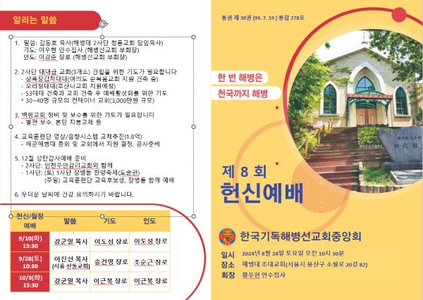 해병대 초대교회에서 제 8회(통합 278회) 헌신예배가 있었습니다.
