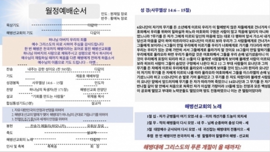 ㅇ찬양: 하나님의 독생자/해병선교회 찬양단